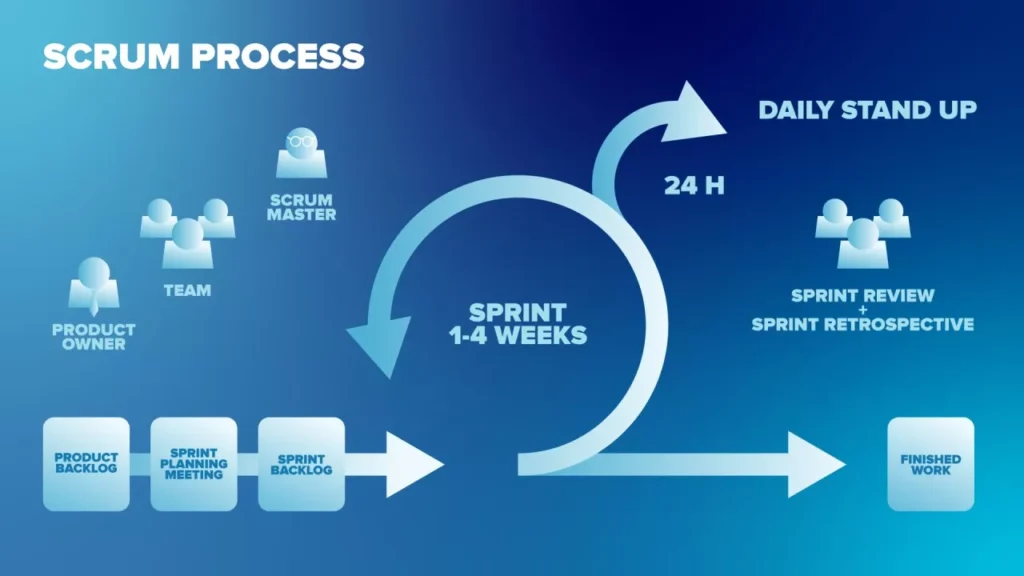 Scrum, Agile metodolojisi içinde en yaygın kullanılan çerçevelerden biridir. WordPress ve genel web geliştirme projelerinde Scrum’ı uygulamak, projenin başarı şansını önemli ölçüde artırır. Tipik bir Scrum süreci şu bileşenleri içerir: